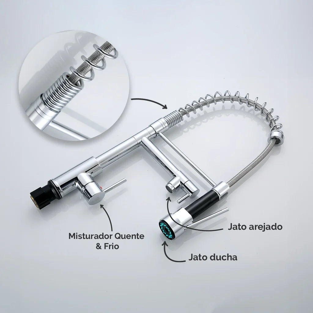 Tenha controle total com a nossa torneira giratória 360°, ideal para cozinhas e banheiros modernos. Água quente e fria em um só toque, com acabamento resistente e design inteligente para facilitar sua rotina.